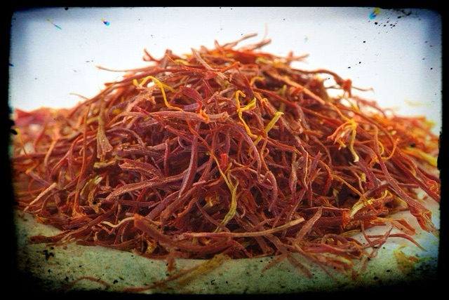 saffron threads I steep in rose water /